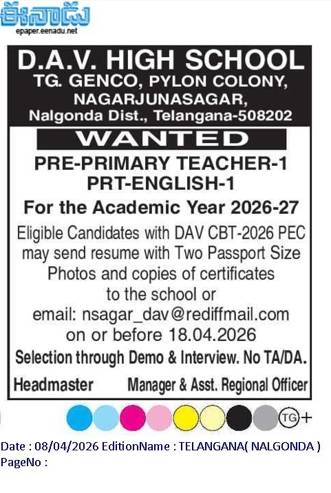 DAV High School, Nagarjunasagar is a project school of TS GENCO established in the year 2005 to cater to the educational needs of the employees of the Hydel Power Project, Nagarjunasagar. The School is managed by DAV College Managing Committee